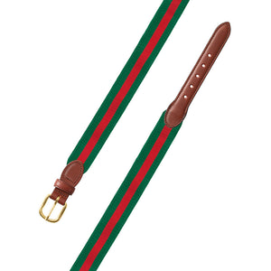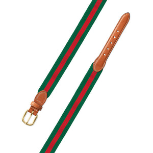 Forest Green & Red Grosgrain Ribbon Leather Tab Belt