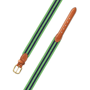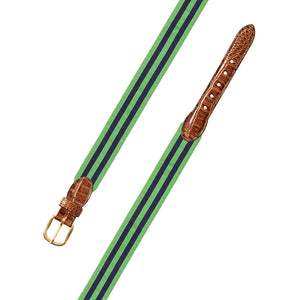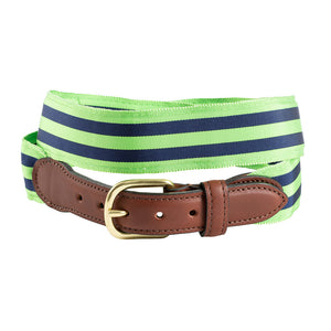 Lime Green & Navy Grosgrain Ribbon Leather Tab Belt
