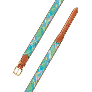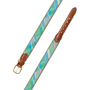 Madras on Tan Fabric Leather Tab Belt