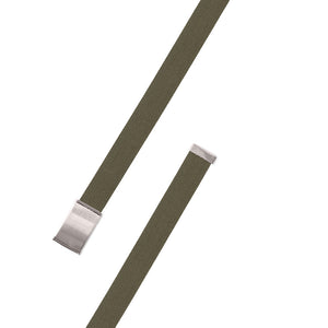 Buckle belts are available in five sizes. Finished belt lengths are: