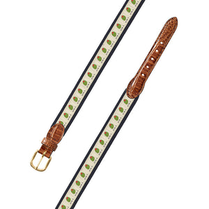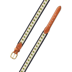 Olive U on Navy Bespoken Motif Leather Tab Belt