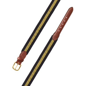 Black & Gold Grosgrain Ribbon Leather Tab Belt
