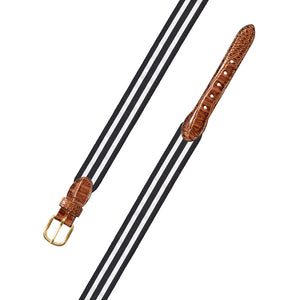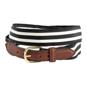 Black & White Grosgrain Ribbon Leather Tab Belt