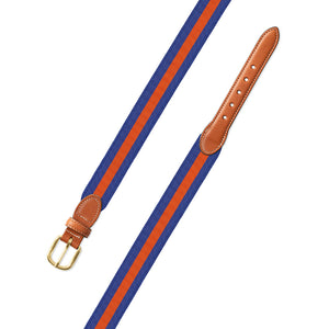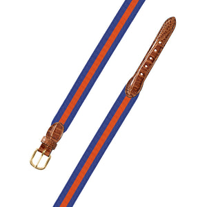 Blue & Orange Grosgrain Ribbon Leather Tab Belt