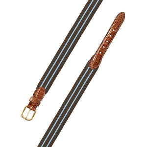 Brown & Light Blue Grosgrain Ribbon Leather Tab Belt