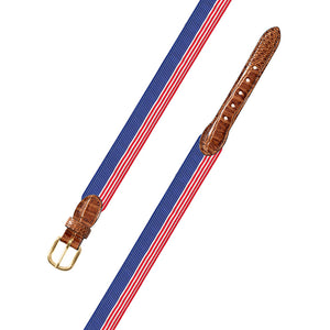 Flag Pattern Grosgrain Ribbon Leather Tab Belt