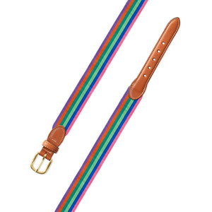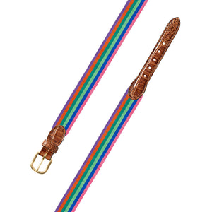 Multicolored Grosgrain Ribbon Leather Tab Belt