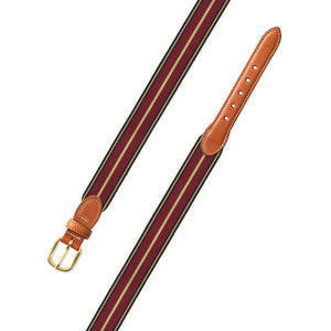 Navy, Burgundy & Gold Grosgrain Ribbon Leather Tab Belt