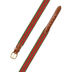 Olive & Red Grosgrain Ribbon Leather Tab Belt