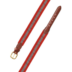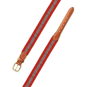 Orange & Grey Grosgrain Ribbon Leather Tab Belt