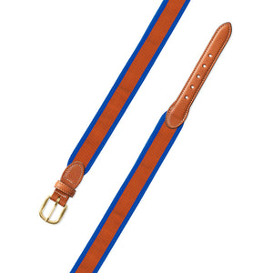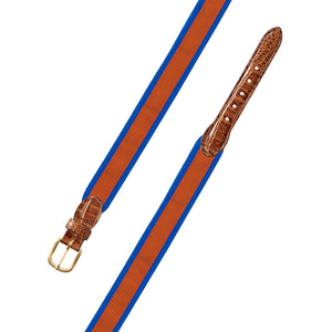 Orange on Blue Grosgrain Ribbon Leather Tab Belt