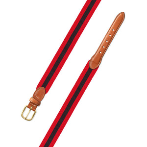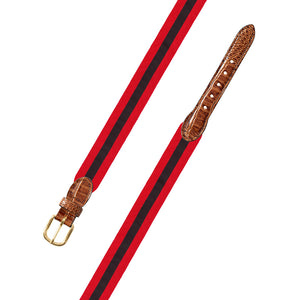 Red & Black Grosgrain Ribbon Leather Tab Belt
