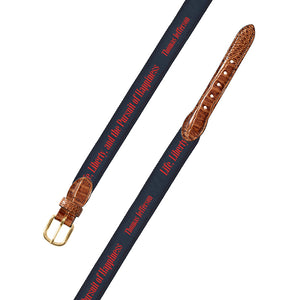 Life, Liberty and the Pursuit of Happiness Bespoken Motif Leather Tab Belt