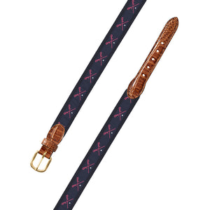 Navy Lacrosse Motif Leather Tab Belt