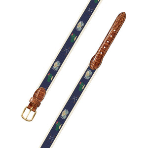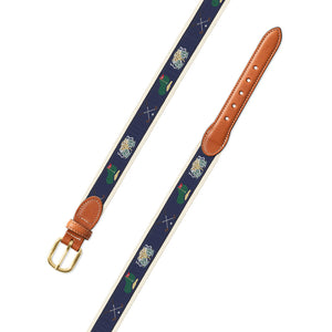 Navy & Natural Golf Motif Leather Tab Belt