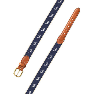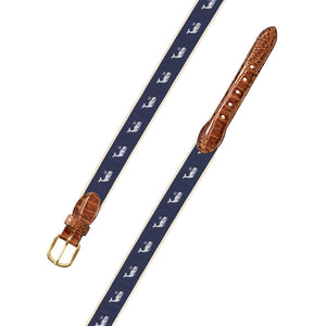 White Whale Motif Leather Tab Belt