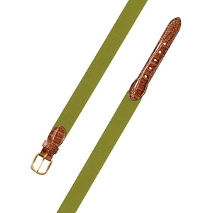Textured Grass Green Belgian Surcingle Leather Tab Belt
