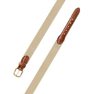 Our leather tab belts are true to size. Please order the same as your child's waist size. Our children's collection includes waist sizes between 22" and 28". For waist sizes 30" or more, please shop our adult collection.