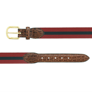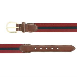 Bordeaux/Dark Navy Stripe Stretch Leather Tab Belt